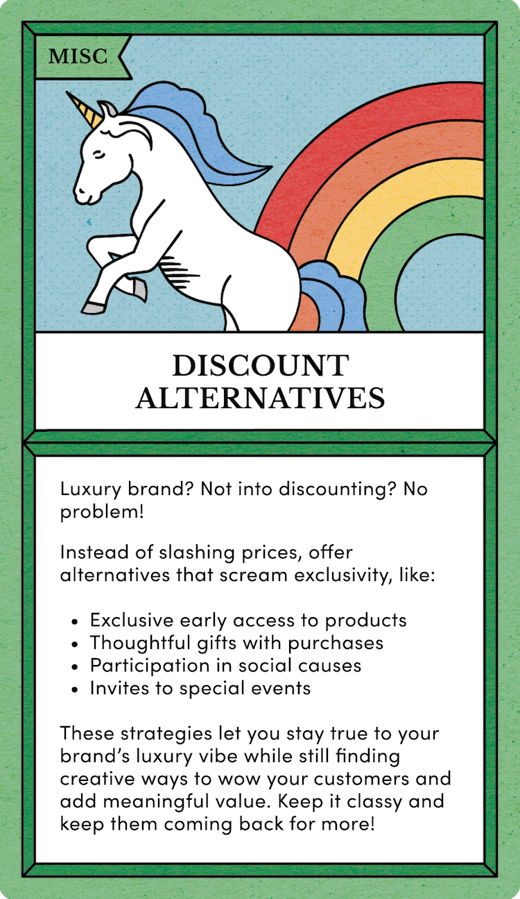 Luxury brand? Not into discounting? No problem! Offer early access to next season's collections or give a quality gift with purchase. Customer incentives don’t have to cut into your margins, instead offer... Exclusive early access Thoughtful gifts Participation in social causes Stay true to your brand identity while leveraging increased traffic!